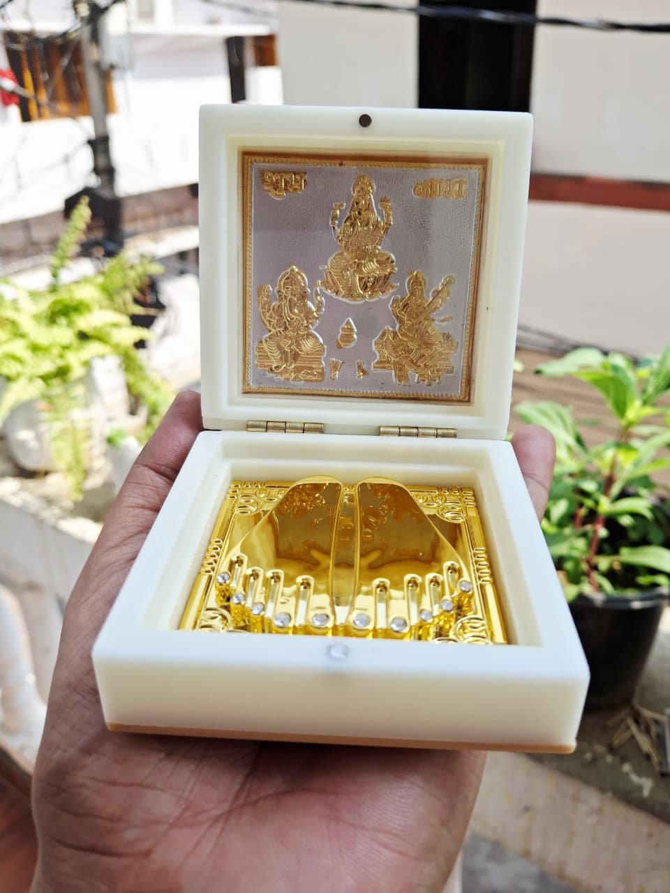 You're viewing: Lakshmi, Ganesh, Saraswati Gold-Plated Pocket Temple For Gifting Original price was: ₹699.00.Current price is: ₹499.00.