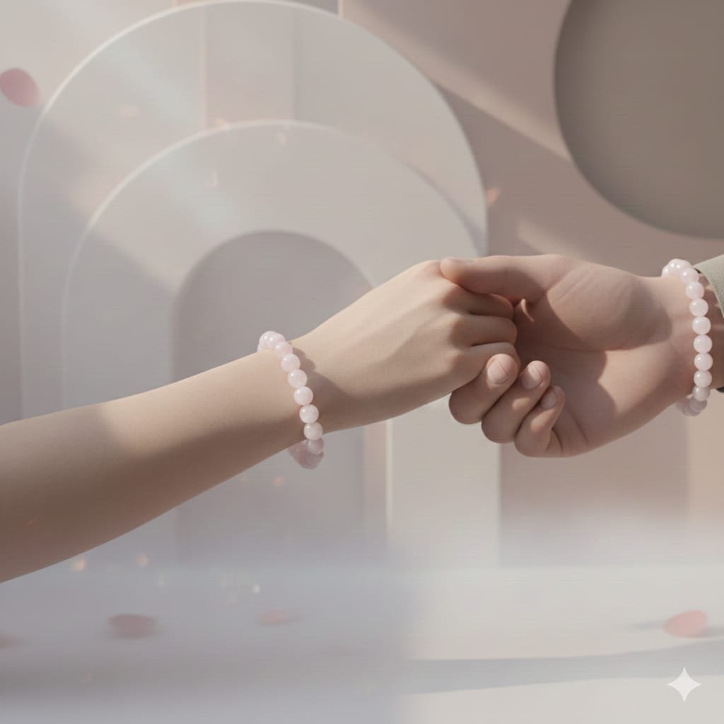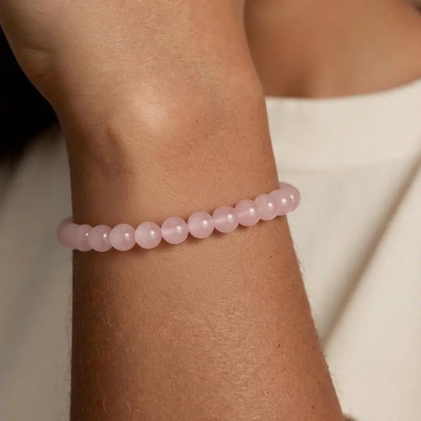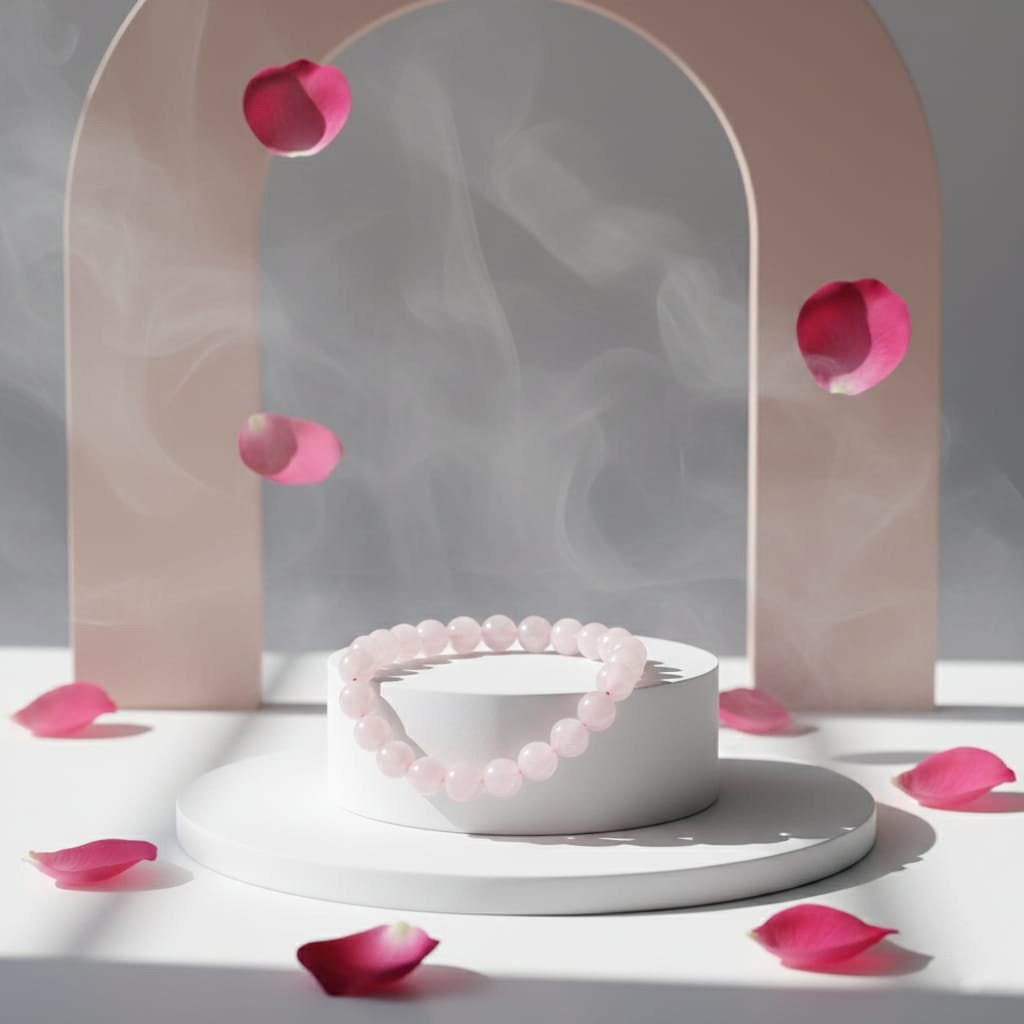 The Rose Quartz Bracelet is the “Stone of Love & Harmony.” Its gentle pink energy heals emotional wounds, strengthens relationships, and opens your heart to compassion.